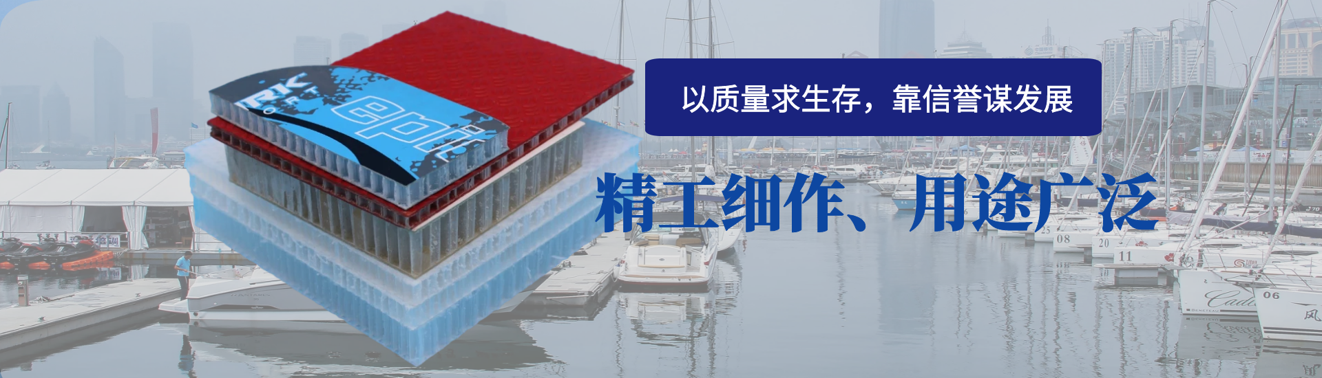 青島凱博新型復(fù)合材料有限公司成立于2013年,主要從事聚丙烯(pp)蜂窩芯材、熱塑性蜂窩復(fù)合板材的研發(fā)、生產(chǎn)和銷售。新型塑料蜂窩作為一種新型環(huán)保材料,具有重量輕、強(qiáng)度高,耐水耐腐蝕,絕緣,隔音等特點(diǎn),可以復(fù)合玻璃鋼、木材、亞克力板等,產(chǎn)品應(yīng)用范圍十分廣泛,常見于游艇,貨車廂體、房車,球拍,櫥柜墊板,石材復(fù)合,建筑模板等諸多領(lǐng)域。凱博新材具有較強(qiáng)的研發(fā)改進(jìn)能力,技術(shù)和管理人員有多年的行業(yè)經(jīng)驗(yàn),不斷吸取先進(jìn)的管理理念和技術(shù)工藝,并結(jié)合國內(nèi)外行業(yè)應(yīng)用現(xiàn)狀,堅(jiān)持以應(yīng)用實(shí)用為導(dǎo)向,以創(chuàng)新研發(fā)為競爭力,以質(zhì)量管理為生命線,為新材料在各個(gè)行業(yè)得到充分合理的應(yīng)... [MORE + ]